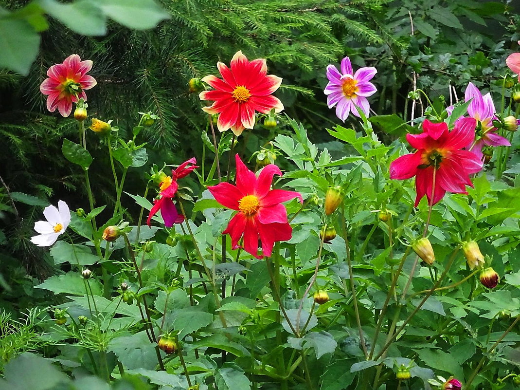 Торговля предлагает большой выбор сортов георгин, которые отличаются по росту, форме, цветам. Главный момент, это перед покупкой понять, для чего будут культивироваться растения. Лучше купить и посадить смесь «Микс»: семена различных сортов, одной высоты. Цветники, на которых посажены такие смеси семян, отличаются выразительностью и сочностью цвета. Это идеальный вариант, чтобы навести красоту в саду.