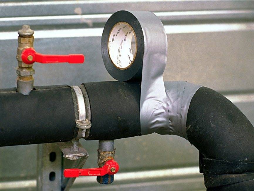 Классические варианты ленты могут применяться для монтажа и ремонта трубопровода. Если вы заметили течь, закрыть ее можно с помощью сантехнического скотча