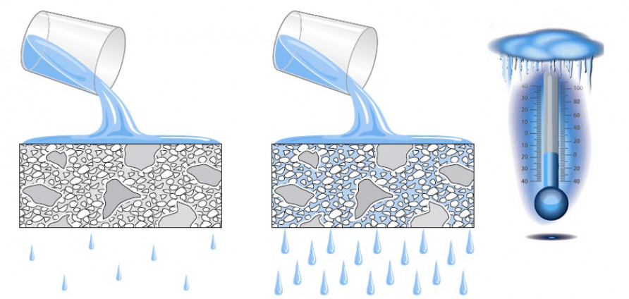 При условии правильного приготовления и заливки в соответствии с будущим назначением, бетонная смесь формирует прочный материал, способный удерживать, в том числе, и в воду. Тем не менее, в отдельных случаях материал может растрескаться, кроме того, вода может проникать через различные технологические отверстия, оставленные ещё при заливке.