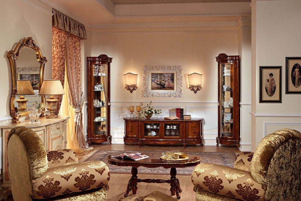Перед покупкой такой стенки важно точно знать, что она впишется в общий интерьер. Он должен быть также выполнен в строгом классическом стиле