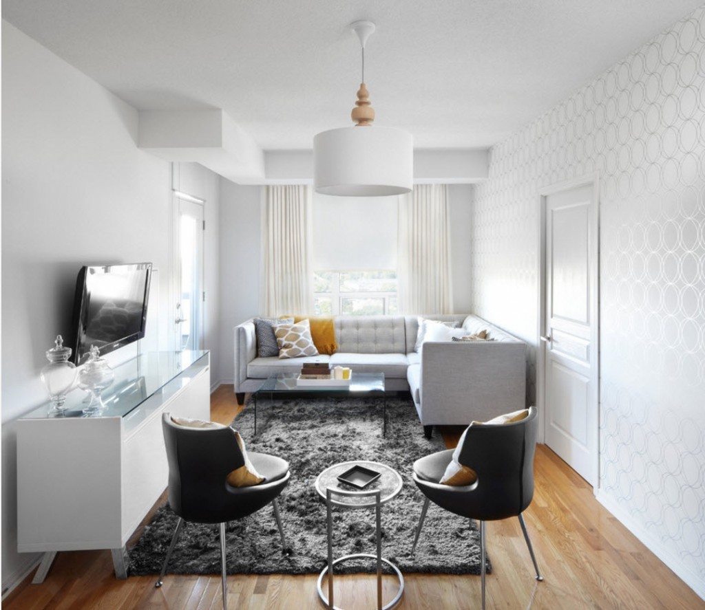 В этом случае зонирование не нужно. Достаточно освободить комнату и сделать ее просторнее. Кроме этого, рекомендуется наполнить комнату искусственным светом. Для минимализма подходят точечные светильники. Они вообще не занимают места и дают ровный дневной свет.