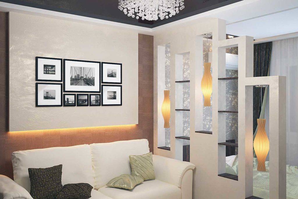 Помимо перечисленных перегородок, для разграничения двух частей совмещенного пространства нужно использовать и визуальные приемы зонирования. Для этого вы можете использовать: