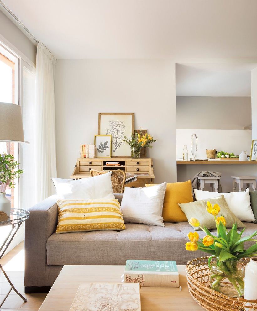 Солнечный свет дает человеку ощущение умиротворения и покоя, поэтому так важно наполнить гостиную комнату естественным солнечным светом. Это легко сделать, освободив пространство окна от темных занавесок, а также обилия цветов на подоконнике