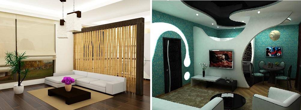 Глухих фальш-стен лучше избегать, иначе одна из зон рискует превратиться в непроветриваемую кладовку. Хорошо смотрятся перегородки, высотой до 1,2 м либо фигурно вырезанные.