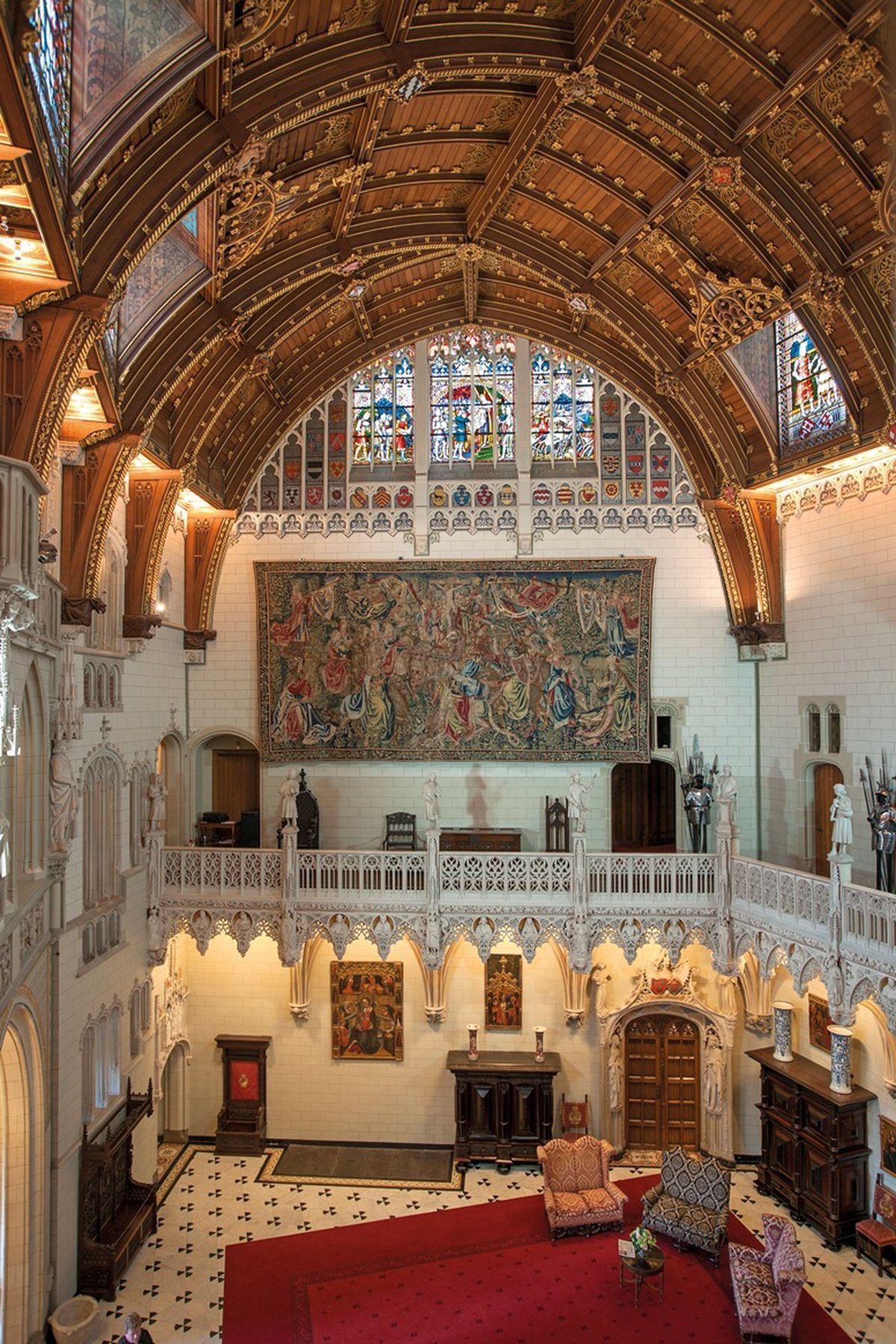 Роскошная парадная гостиная в Замке де Хаар (). Помещение выполнено в виде главного нефа церкви. Большой зал в центре окружают многоярусные галереи со скульптурами и резными деталями из камня.