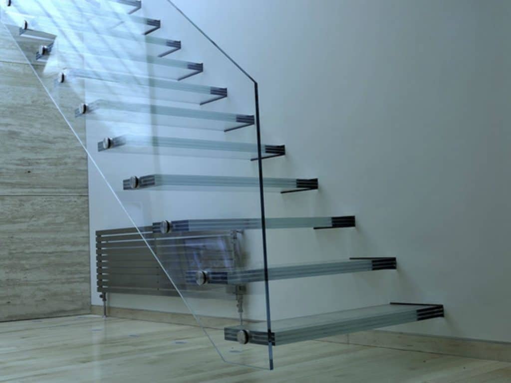 Чтобы обеспечить надежность конструкции, при ее создании используется несколькослойное закаленное стекло. Обычно это триплекс. Одна ступенька из него способна выдержать нагрузку около 350 кг. Недостаток конструкции из такого стекла в ее значительном весе.