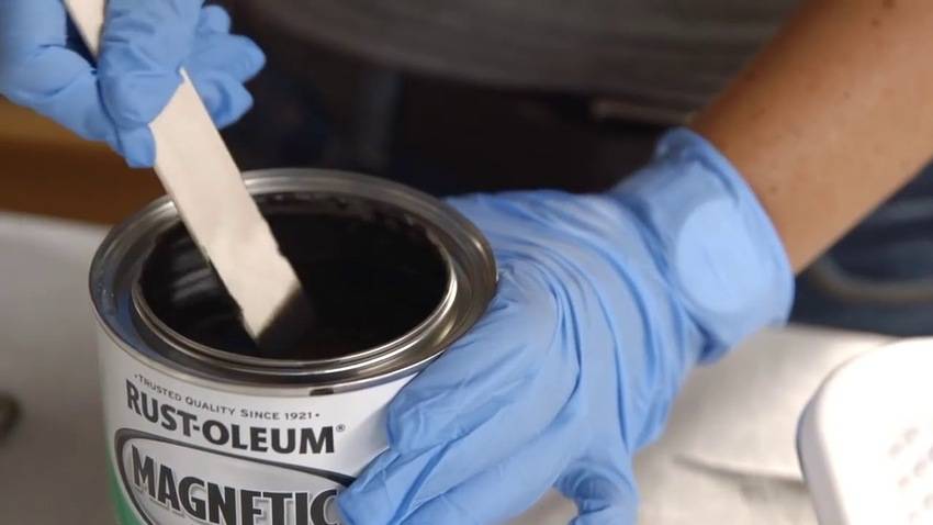 - Нанесение магнитного слоя (опционально). Если используется магнитная краска, то сначала наносят и просушивают ее. Понадобится 1-2 слоя и ожидание в 24 часа перед грифелем. Если магнитные свойства не нужны, приступают сразу к грифельной краске.