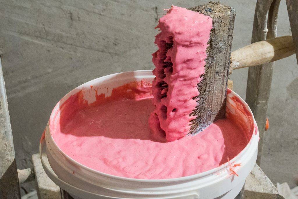 ? не пугайтесь, что грунт имеет розовый цвет – это не последствия несоблюдения условий хранения, данная окраска ему придана производителем намеренно, чтобы было видно на серой бетонной поверхности, какой участок уже обработан;