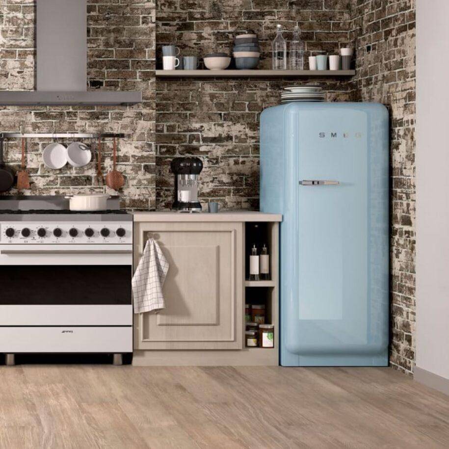 DON R 291 – двухкамерное охлаждающее устройство цвета жасмина с электромеханическим управлением и ручным способом размораживания. Модель Smeg FAB32RVN1 зеленого оттенка с двумя камерами и отдельной установкой.