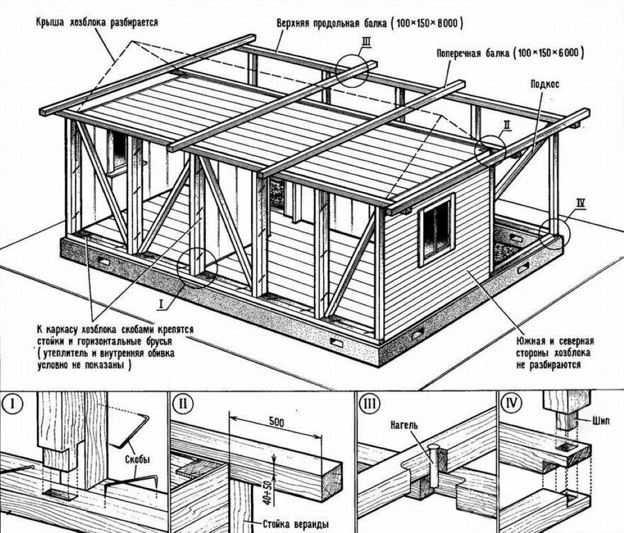 Чертежи простых хозблоков для дачи