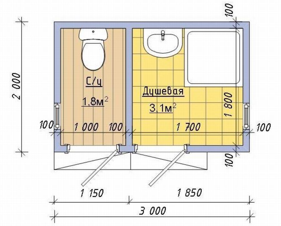 Важно, чтобы для туалета был отдельный вход с дверью. В этом случае им можно пользоваться индивидуально, не мешая использовать другие помещения
