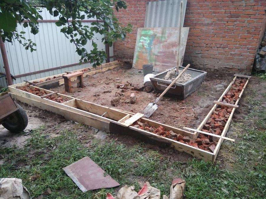 - Постройте фундамент, используя кирпичи или другой подходящий материал.