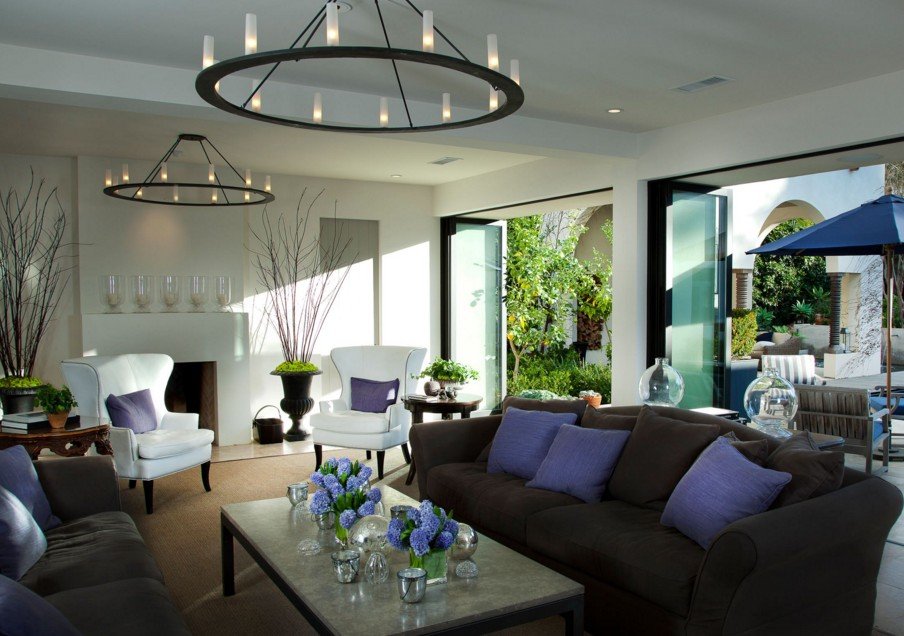 - Оформление. Выбирая люстру для гостиной в современном стиле, не стоит ограничиваться своими представлениями об этом понятии. Приемлемыми направлениями будут этно-, экостиль, скандинавский, ультрамодерн, неоклассика, минимализм и лофт.