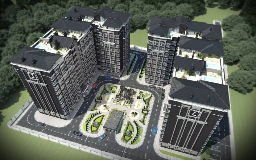 - Детские и спортивные площадки (баскетбольная площадка, футбольное поле, теннисный корт).