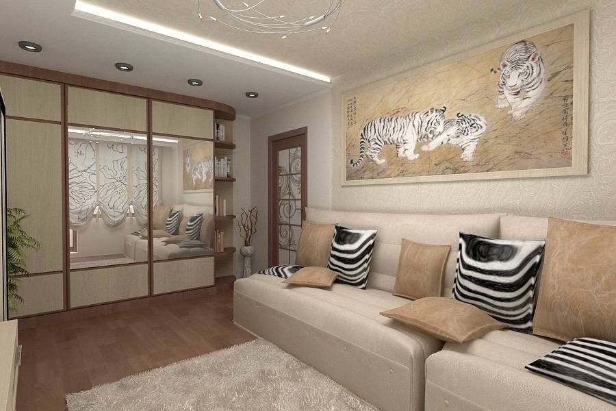 В случае, если для сна используется полноценная кровать, её требуется отделить от области, используемой в качестве гостиной. Делают это с помощью:
