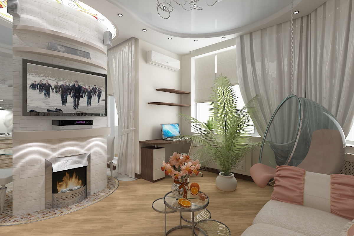 Концепция оформления гостиной должна создавать уютную и тёплую атмосферу, для этого нужно отдельно поработать над некоторыми элементами комнаты: