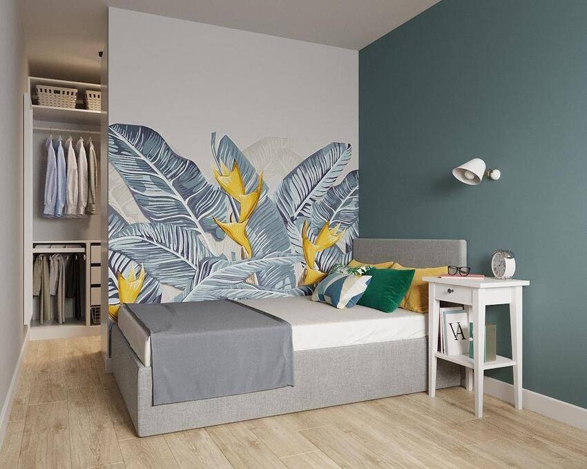 На стену за изголовьем можно повесить интересные панно, картины или постеры.