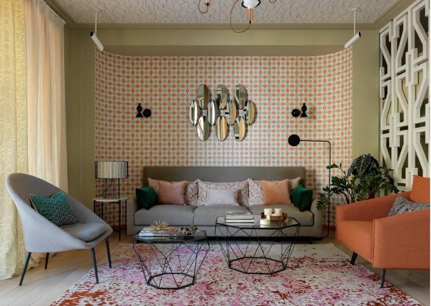 Основой всегда выступает нейтральный, приглушенный или пастельный тон. Это может быть и белый, и натуральный древесный, и серый, и даже светлый розовый. Акценты выбирают более насыщенные, интенсивные, темные или яркие. К последним, к слову, относят не только декор, но и выделяющиеся покрытия, и необычная мебель, и инструменты зонирования.