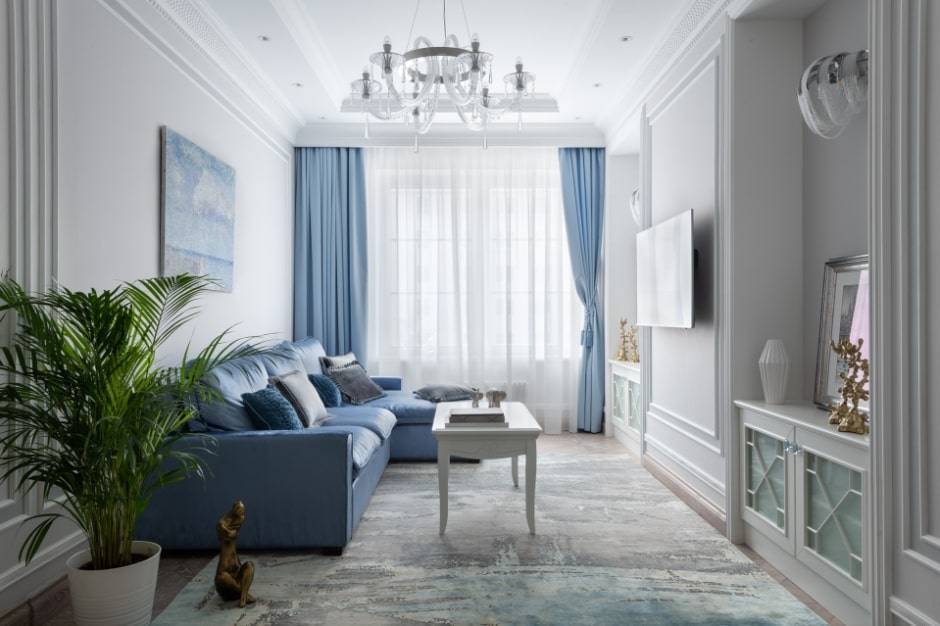 В гостиных, выходящих на северную сторону, лучше использовать теплые оттенки, а южное направление не пострадает и от холодных тонов.