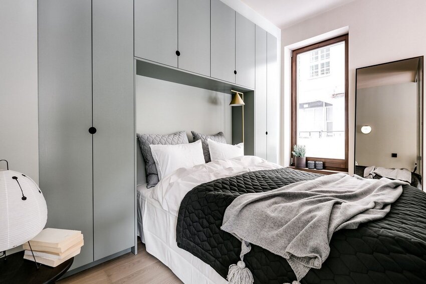 Если вы располагаете чуть большим количеством свободного места, откажитесь от слишком широкой кровати в пользу средних размеров. Сэкономленное пространство вы можете заполнить дополнительными местами для хранения вещей. В небольших квартирах этого места всегда не хватает.
