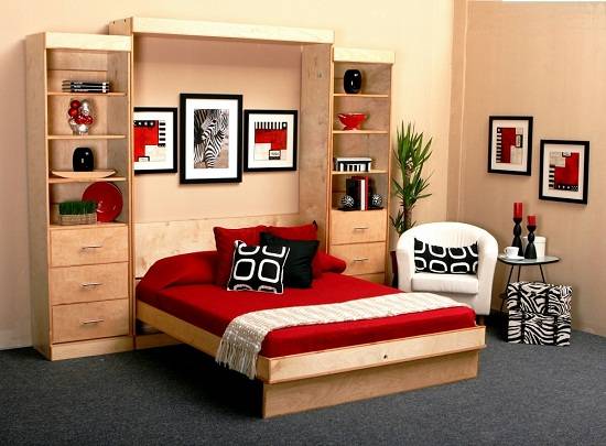 В маленькой спальне хорошим вариантом меблировки будет использование мебели-трансформеров вроде шкафа-кровати, стола-кровати, кровати-дивана.