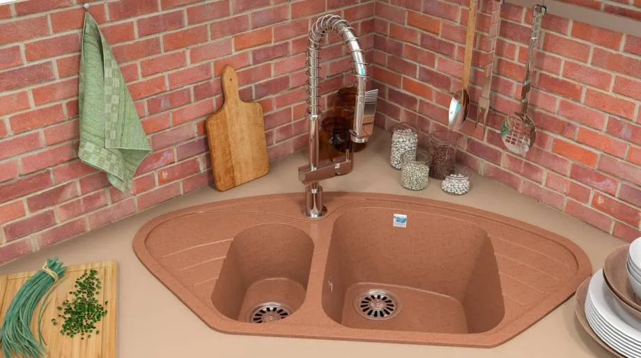 Так производятся современные мойки из искусственного камня. Компаунд обладает высокой пластичностью, которая позволяет легко отлить изделие любой формы. Применение специальных красителей в составе вещества позволяет создать сантехнику, неотличимую по цвету и фактуре от природного камня. По твердости и износостойкости такие раковины также мало уступают натуральным материалам, а вот пластичность синтетического вещества намного выше, поэтому кориановую мойку повредить совсем нелегко.