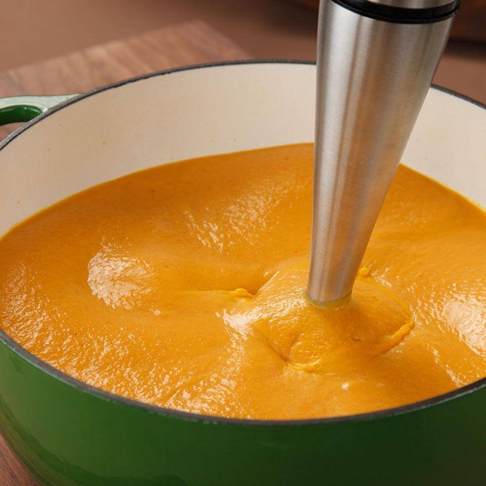 Довольно часто причиной купить блендер становится желание регулярно готовить суп-пюре. Первоначально такое блюдо готовят малышам, которые отказываются или пока еще не могут употреблять в пищу первые блюда. С приготовлением супов-пюре прекрасно справляются и стационарные, и погружные модели.
