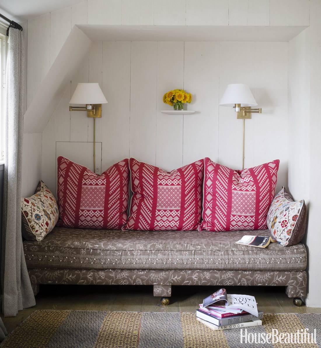 Если в комнате вместо комода поставить большой сундук, то его верхнее пространство, как в старину, используют в качестве лежака.