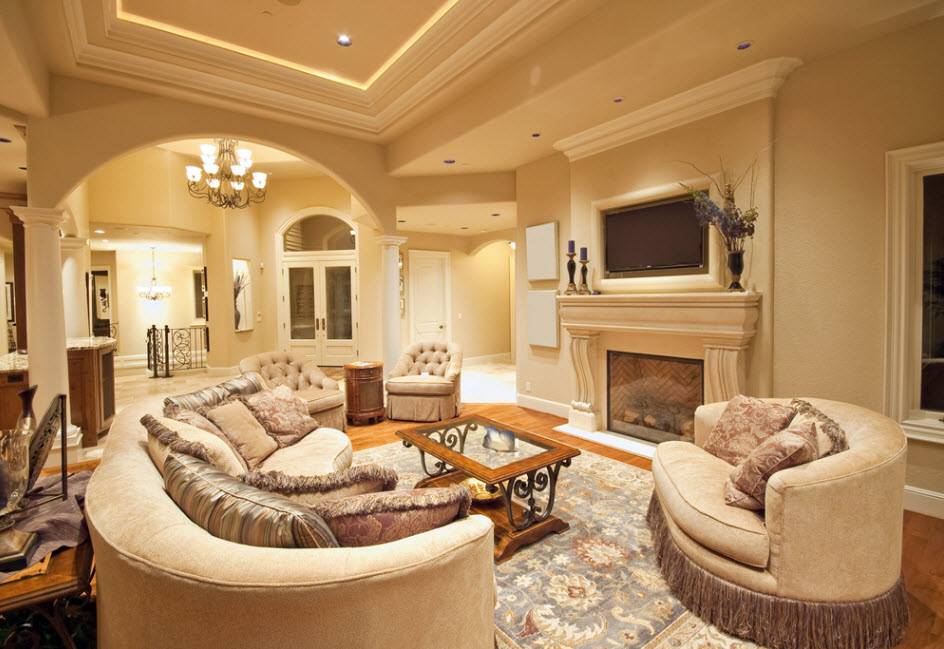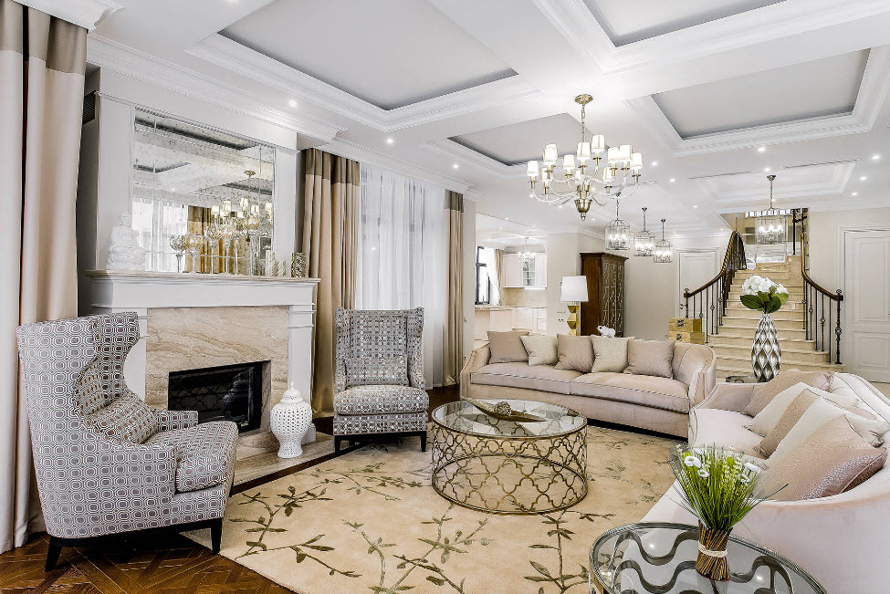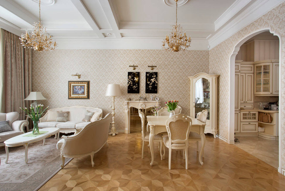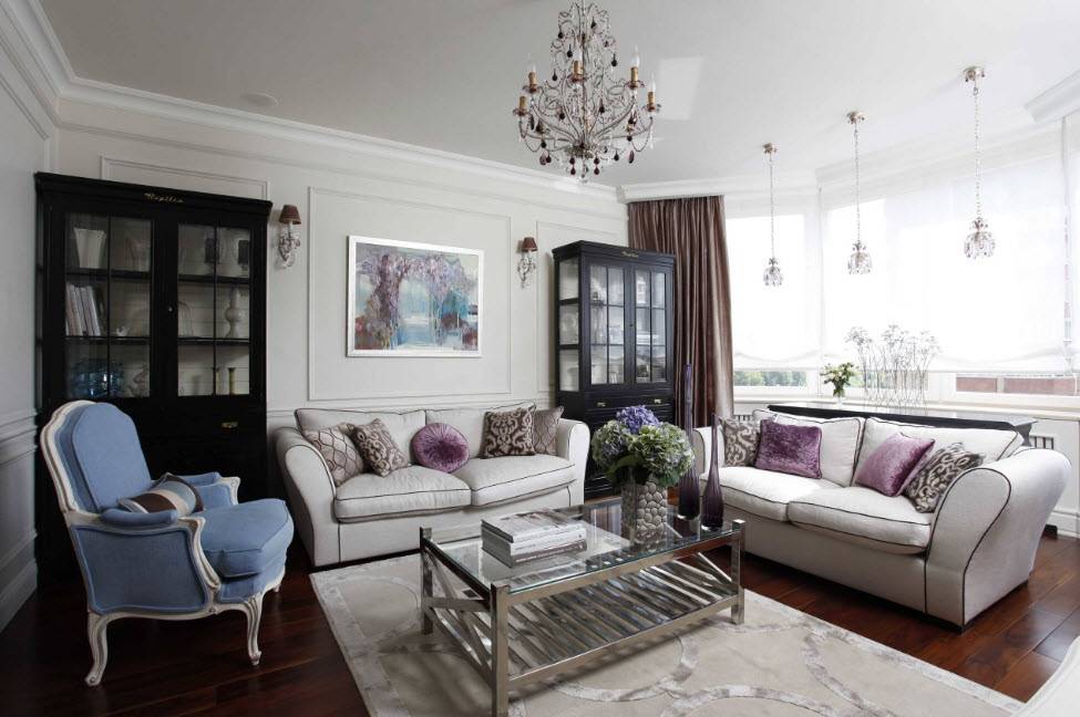 Пример того, как расставить мебель в зале в классическом стиле