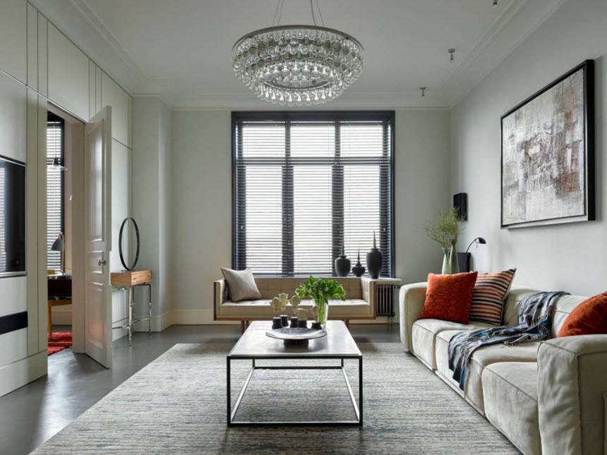 Интерьер гостиной любого размера можно сделать модным и привлекательным. Небольшие залы рекомендуется оформлять в стиле минимализм. Он зрительно увеличивает пространство.