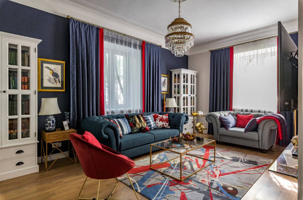 Чтобы придать стиля интерьеру гостиной, можно использовать приемы: