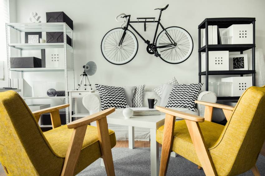 Подойдут неожиданные предметы, например, велосипед, кашпо.