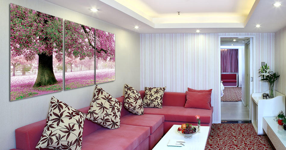 Арт-обои. Их располагают на стене, делая их главным акцентом комнаты.