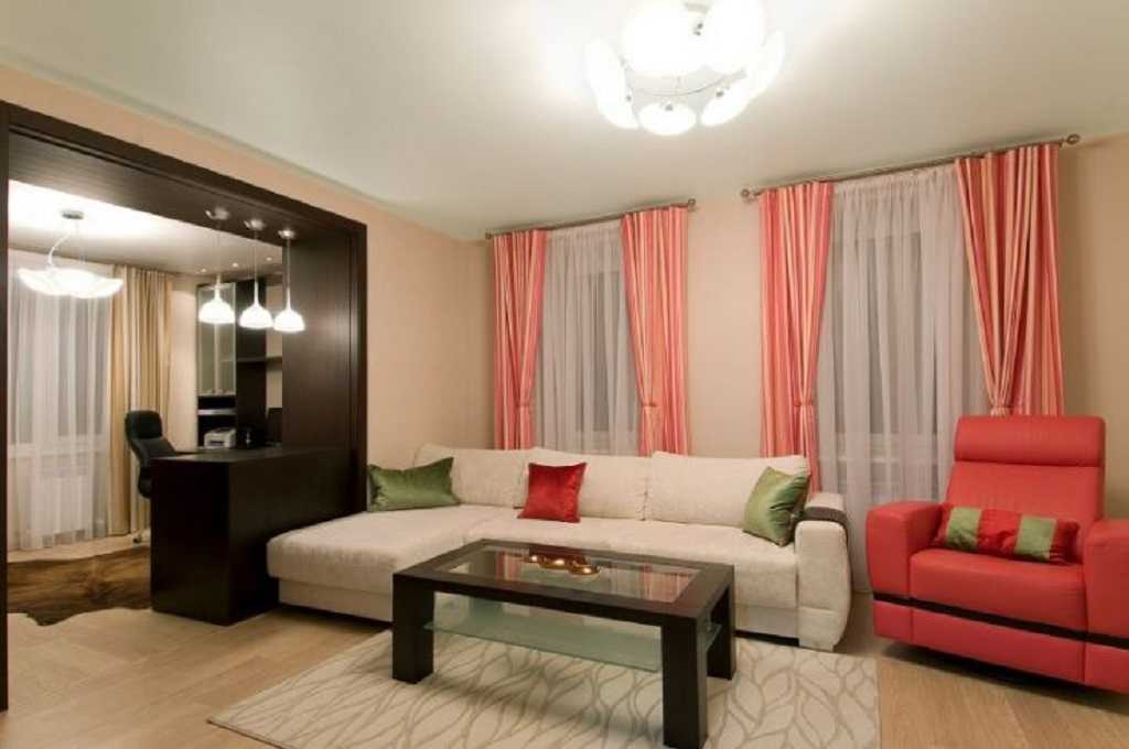 Интерьер проходной гостиной полностью зависит от расположения дверей в другие комнаты, так как проход между ними должен быть свободным
