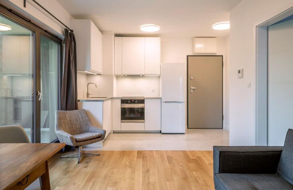 Не забывайте, что доминирующие в квартире темные оттенки визуально уменьшают пространство. Поэтому, если вам его жаль, отдайте преимущество светлым тонам. Так гостиная, совмещенная с кухней станет ощутимо просторнее.