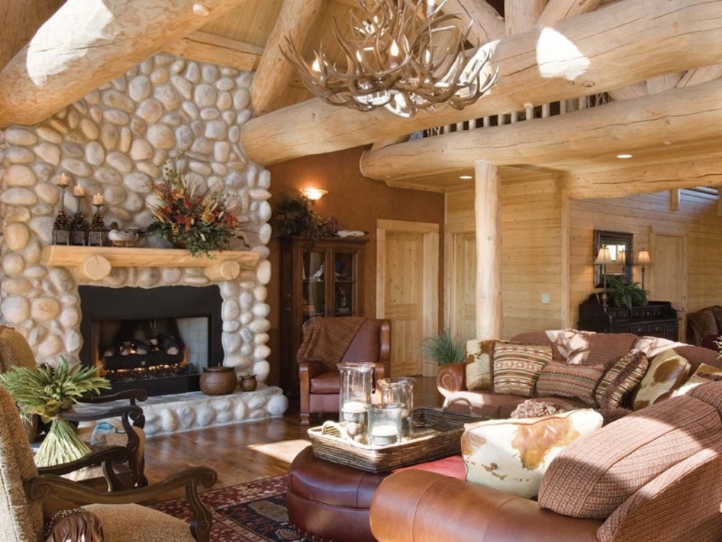Дерево, камень и кирпич – лучшие материалы для отделки гостиной загородного дома