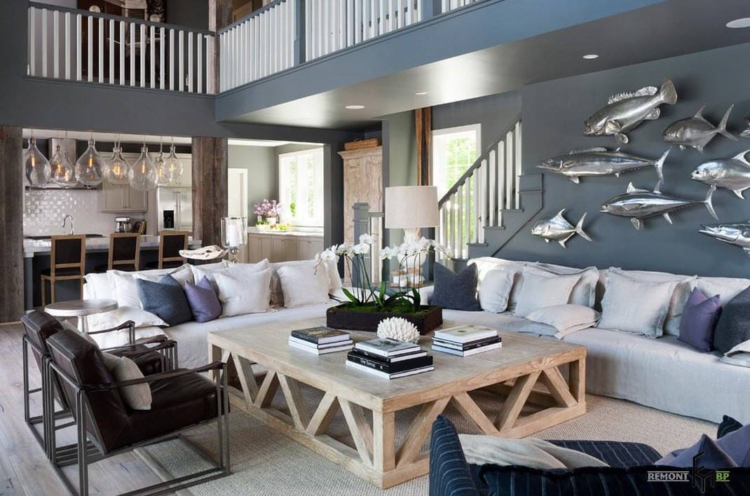 Интерьер гостиной в загородном доме зависит от множества деталей. В качестве декора могут выступать самые разнообразные предметы.