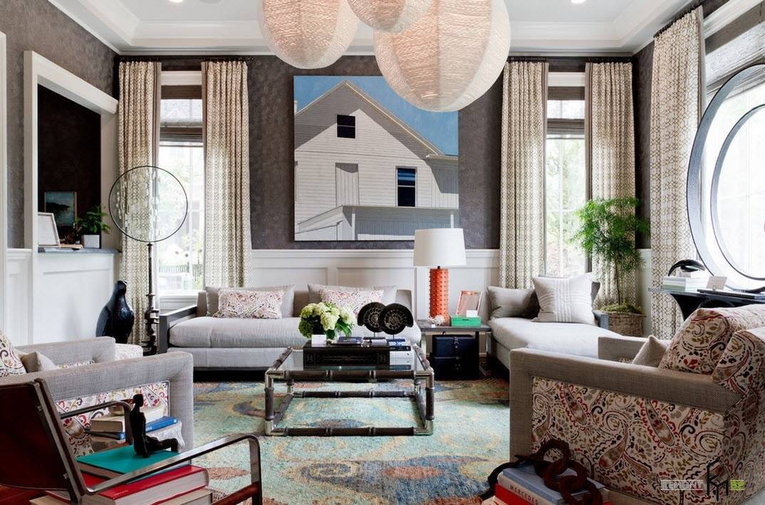 Эклектичная гостиная в загородном доме – поток творческих решений