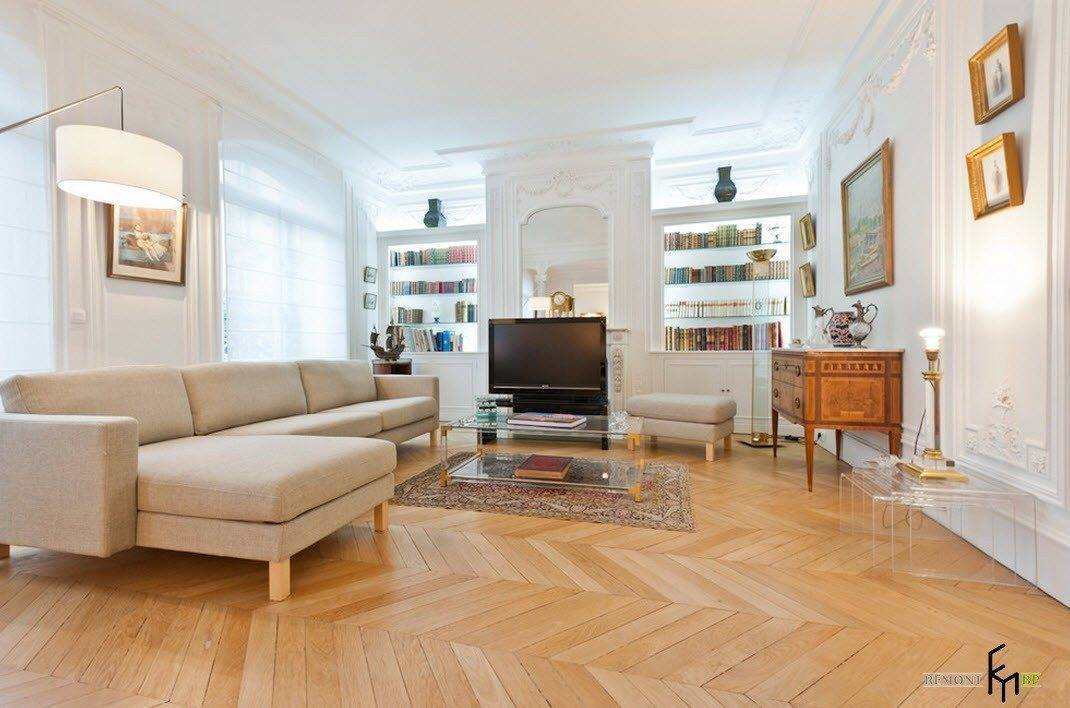 Ламинат в качестве напольного покрытия в интерьере гостиной