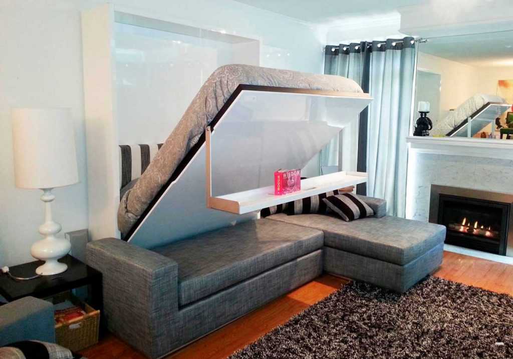 - Диван кровать. Радикальным решением проблемы выступает замена кровати и дивана на их симбиоз. Это позволит одновременно и спать, и отдыхать.