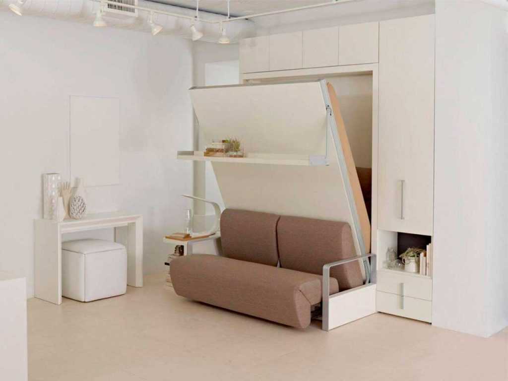 Хороший вариант — обставить однокомнатную квартиру мебелью типа трансформера. Её существует множество разновидностей – как для кухни, так и для жилой комнаты. Это может быть кровать-стол, кровать-шкаф для одежды или откидной кухонный стол.