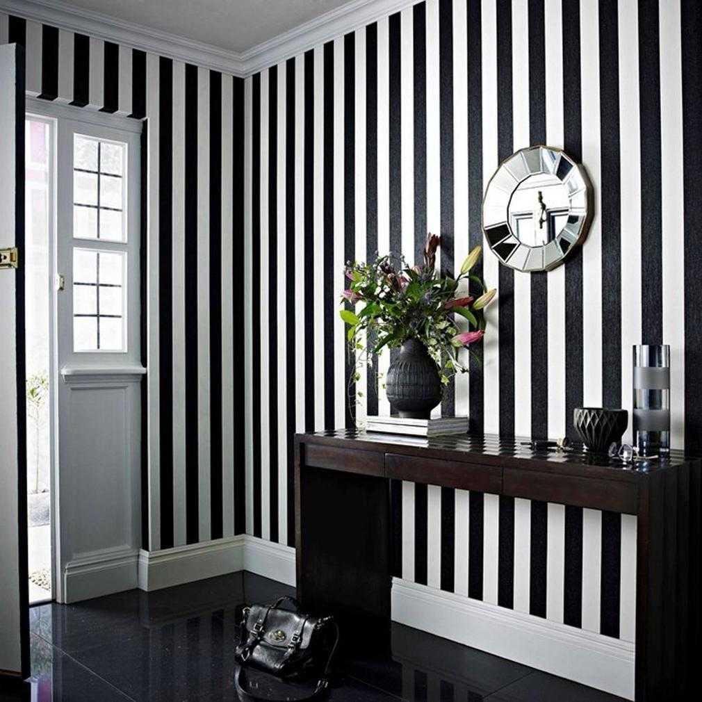 Важно не использовать много оттенков, чтобы не перегружать интерьер. Отлично смотрится стена с черно-белыми полосами: узкими и широкими