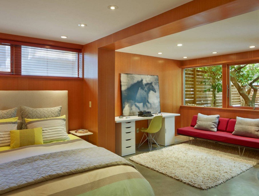 Кроме того, для обустройства помещения, предназначенного одновременно и для отдыха, и для работы требуется нестандартный дизайнерский подход.