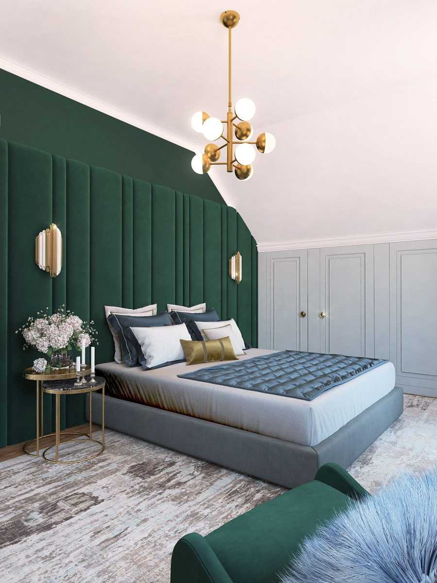 Роскошная спальня с изумрудной кроватью