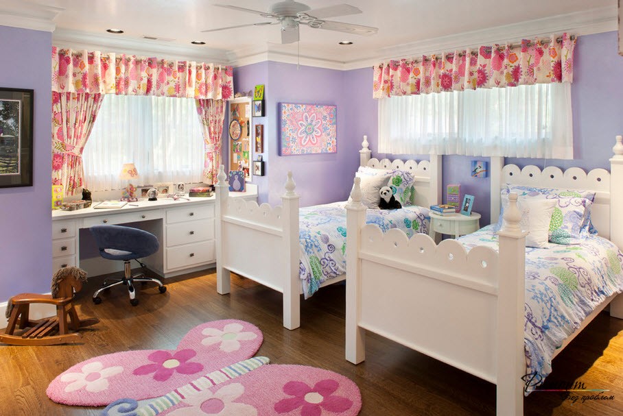 Хорошей идеей для оформления, как подросткам, так и взрослым является сиреневая комбинированная спальная.