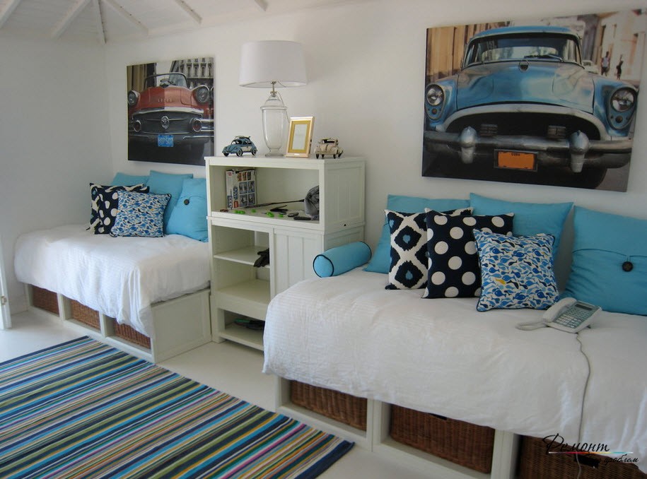 Как сэкономить пространство в маленькой комнате с двумя кроватями? Этим вопросом задаются огромное количество людей, которые столкнулись с необходимостью обустроить такую комнату в своей квартире. Конечно, здесь важна не только расстановка мебели, но и ее конструкция. И здесь как нельзя кстати будут кровати с выдвижными ящиками или встроенными тумбами. Это позволит отказаться от дополнительных комодов в спальне и в тоже время не ощутить недостатка в месте для личных вещей и прочих принадлежностей. В такой комнате должна быть использована любая ниша, и даже подоконник, который при правильном оборудовании станет полноценным рабочим местом.