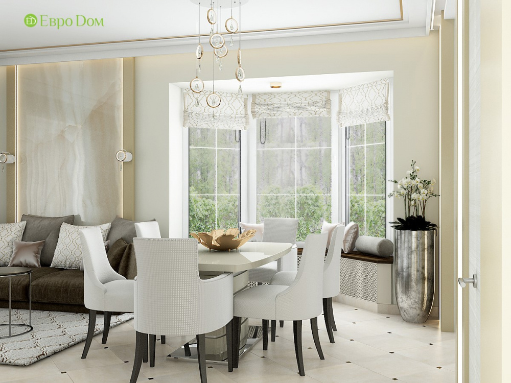 Большое внимание уделяется естественному и искусственному освещению. Поэтому окна не драпируются тяжелыми портьерами, а оснащаются современными жалюзи или рулонными шторами