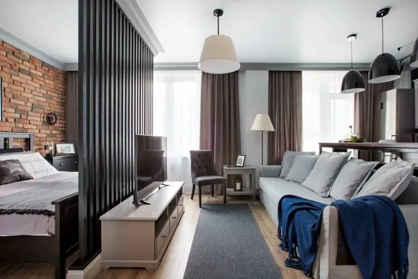 В гостиной, совмещенной со спальней, стиль лофт будет также уместен, как и минимализм. Оба эти стиля пропагандируют максимум естественного света, который позволяет даже самое маленькое помещение сделать просторным.