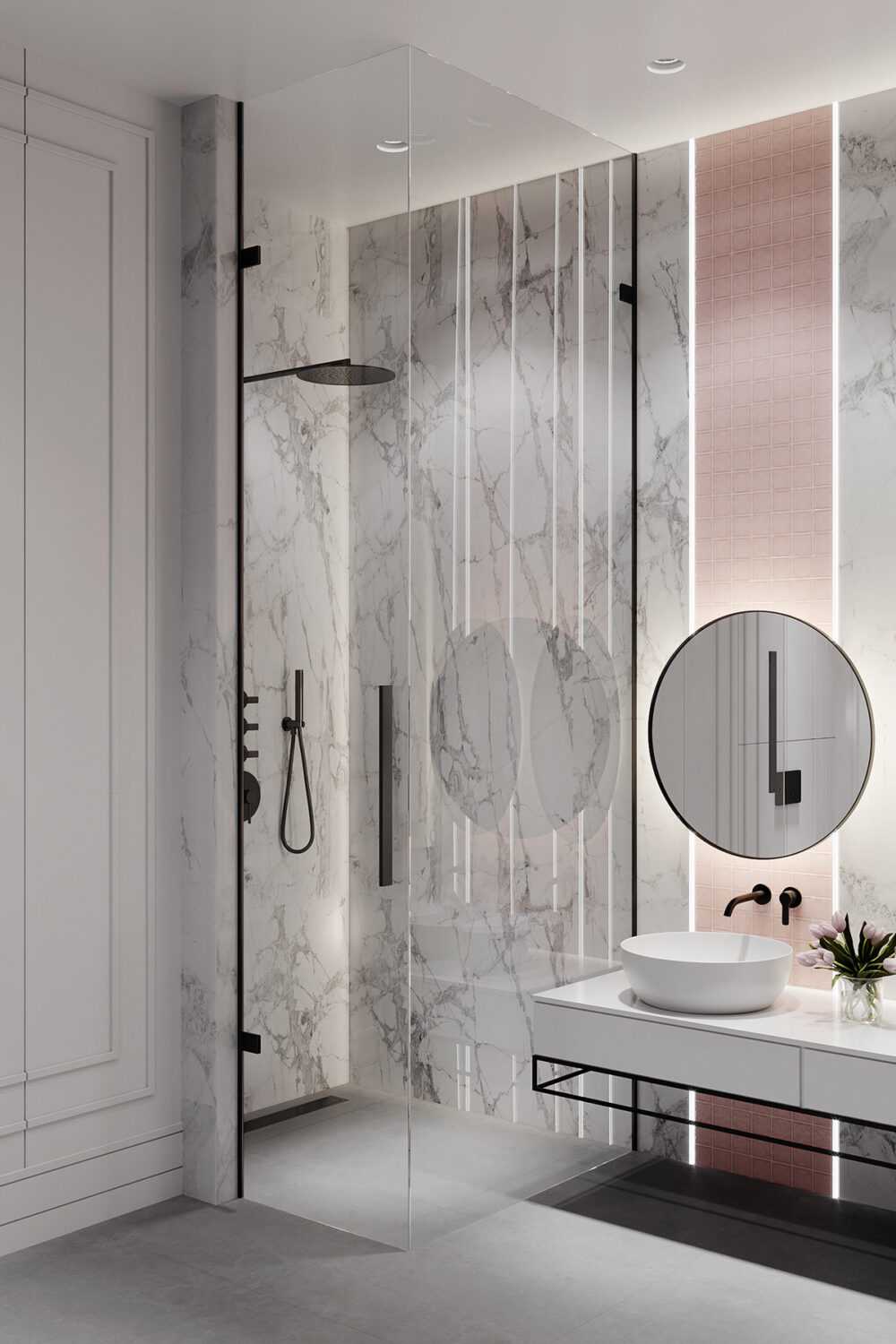 Все-таки неоклассика многое взяла из дворцовых интерьеров, поэтому ей близки просторные помещения, полные воздуха и света. В идеале ванная комната в стиле неоклассика должна быть просторной, может быть, даже объединенной со спальней или отделенной стеклянными перегородками. Чем больше места и свободы в передвижении, тем лучше.