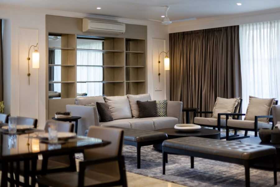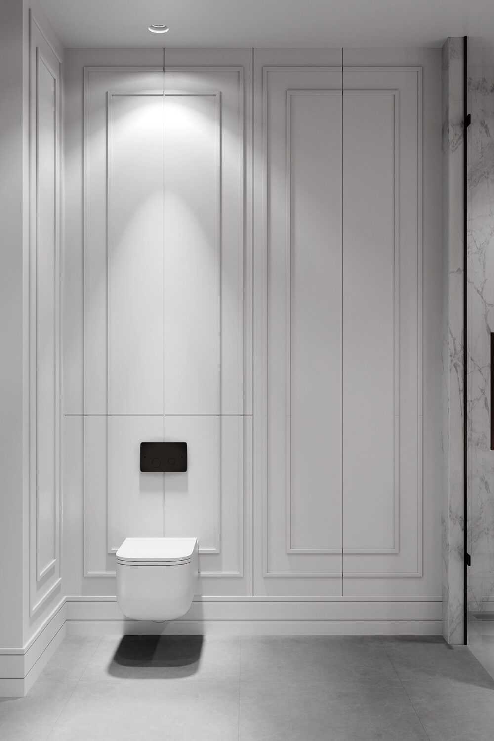 Дизайн в неоклассическом стиле по-прежнему сдержан, поэтому здесь преобладает нейтральный, ненавязчивый цвет: